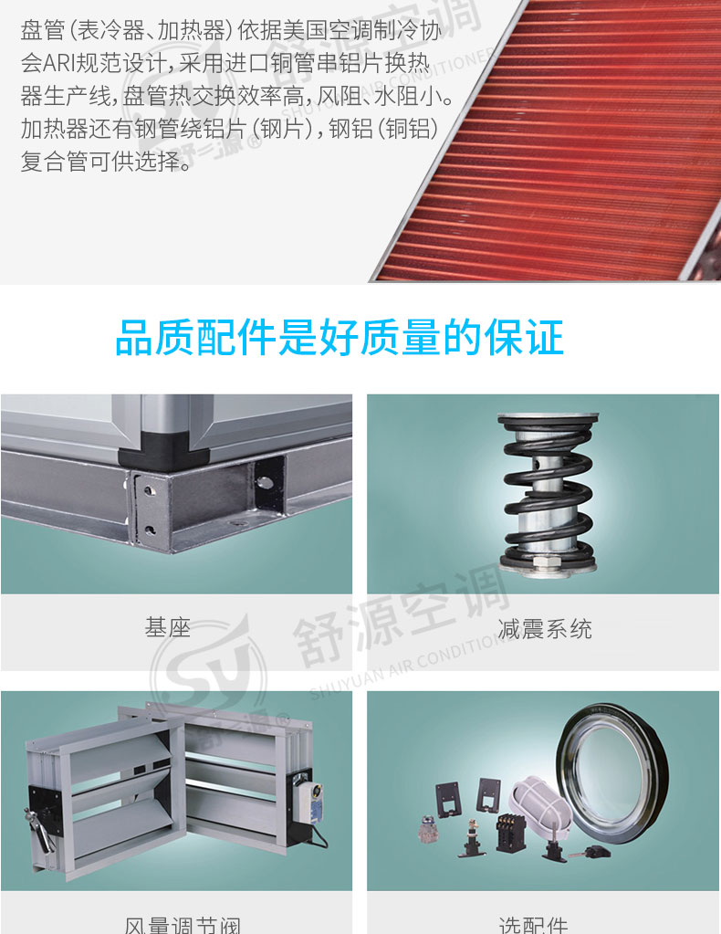 江蘇舒源空調(diào)制造有限公司生產(chǎn)“舒源”牌組合式空調(diào)機組、柜式空調(diào)機組、風(fēng)機盤管和各種規(guī)格通風(fēng)配件、自動控制柜、空氣凈化及防火閥消聲類產(chǎn)品,亦承接空調(diào)通風(fēng)工程、凈化工程的設(shè)計、制作安裝業(yè)務(wù),并可根據(jù)用戶需要設(shè)計制造非標(biāo)產(chǎn)品。